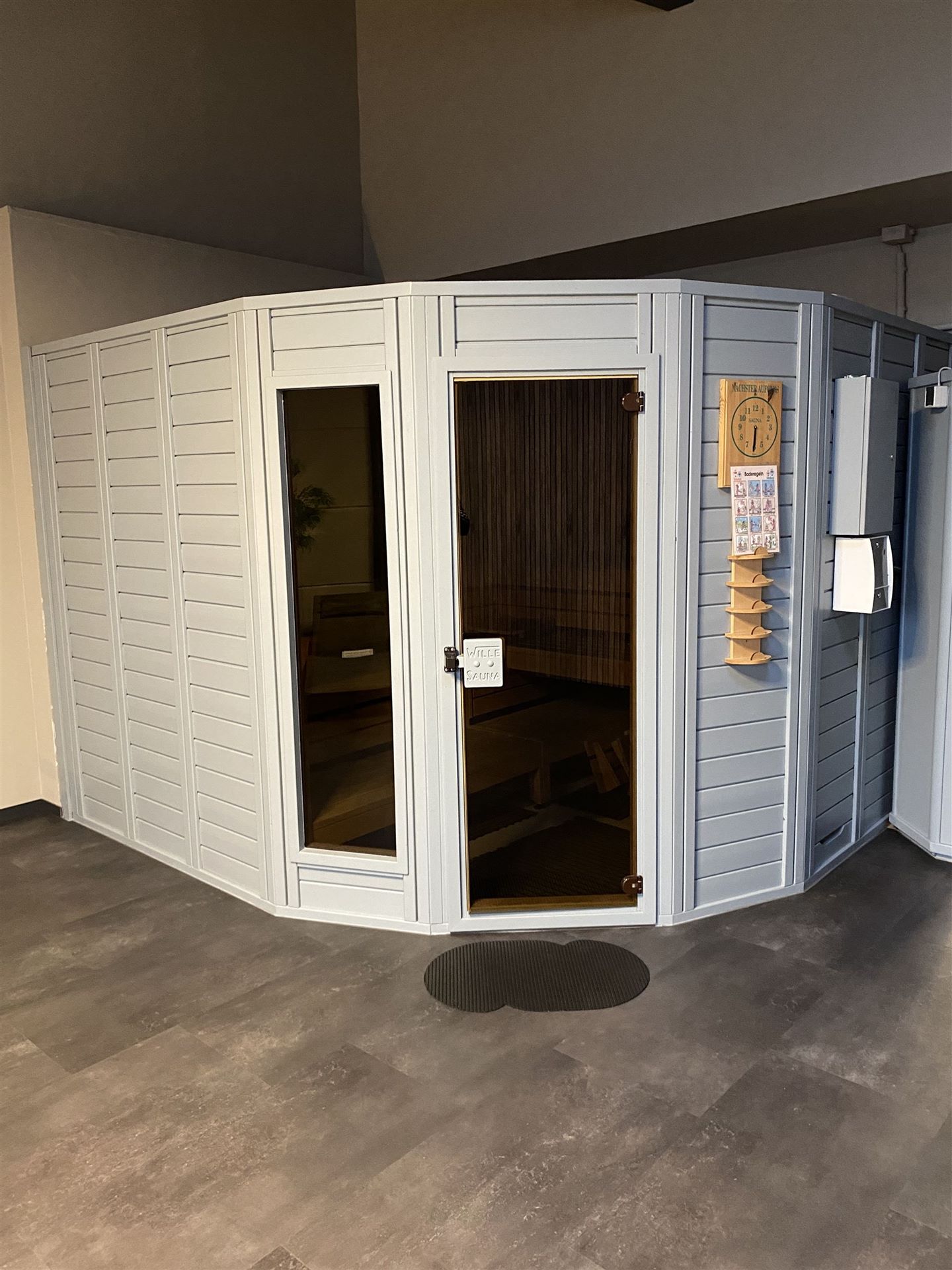 - Vor dem ersten Saunagang sollten sie Duschen gehen und gut abtrocknen.